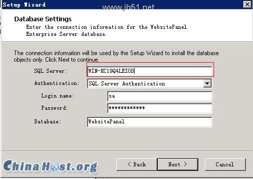密碼:****[在安裝MSSQL數據庫時填寫的密碼]