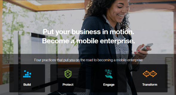 上圖是IBM旗下的MobileFirst產品,其主要為用戶移動應用從創建到維護推出的一體化解決方案為廣大用戶提供更便利服務,那么根據項目提煉出關鍵詞:手機、用戶,該網站用了一張人拿著手機進行使用的圖片,目的是為了突出項目的業務特點。