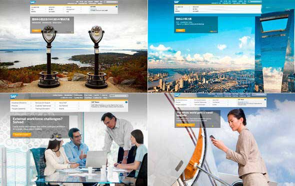 上圖為SAP公司官網的系列圖片,作為全球最大的B2B企業為各行各業、不同規模的其他企業提供解決方案,正如它運用不同行業場景的圖片一樣:色彩豐富、但色調又不過于鮮艷,它們所有用到的圖片都有這些特點。
