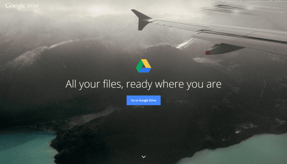 上 圖是google云盤官網banner背景為一張在飛機向外看的圖片,不難發現用這種比擬手法來表現云盤的口號“隨時隨地使用”,在任何時候、任何地點都 可以使用文件。換位思考,假如我們來設計google云盤官網,首先提煉出關鍵詞:隨時隨地、自動同步、超大空間等等,用最能突出特點和有代表性的關鍵詞 來尋找合適的圖片。