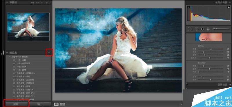 可以選擇「+」新增預(yù)設(shè)到Lightroom,或者按左下把設(shè)定復(fù)制到其他照片上。