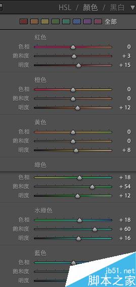 之后找到"HSL/顏色/黑白"這欄,按中間的"顏色"就可以看到以下界面,調(diào)整畫面顏色,藍(lán)色的飽和度可以調(diào)高一點(diǎn),可以根據(jù)個(gè)人喜好做出修改。