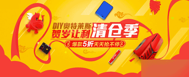 比如上圖無論從紅黃配色還是那條貫穿主線的彩帶看,都給人傳達出一種很喜慶熱鬧的感覺,一看就是新年促銷活動,飄散的物品也很好的告知了這是賣數碼相關產品的。