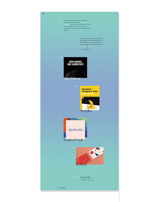 頁面的主色為清爽的藍(lán)綠色,這時選擇的背景配圖是人臉眼睛的部分,攝影作品本身帶有柔和的肉色,與藍(lán)綠色相得益彰: