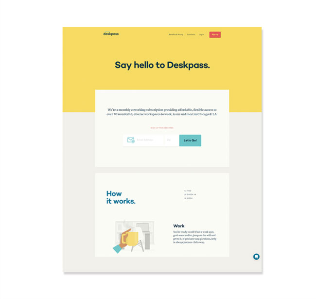 頁面的主色為橙色,而襯托色為淺色粉,這兩種色彩為鄰近色,彼此飽和度上有非常明顯的對比,也能很好的襯托出主色,為頁面的氛圍增加溫度: