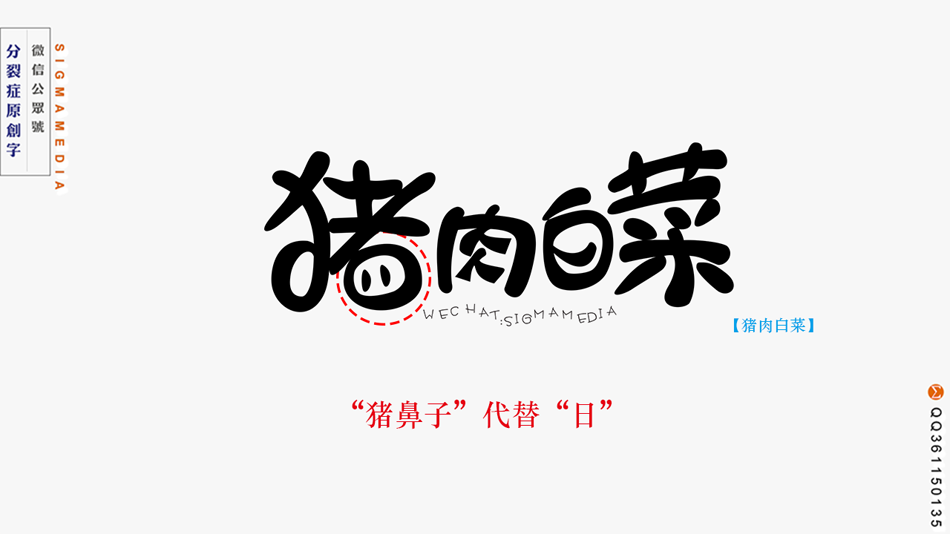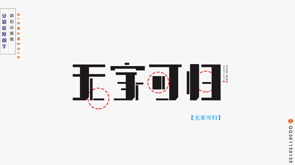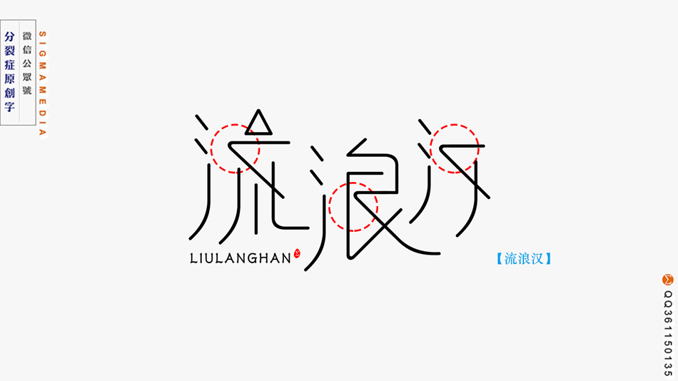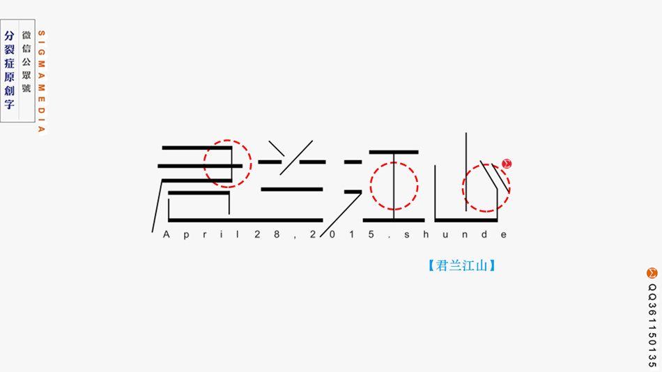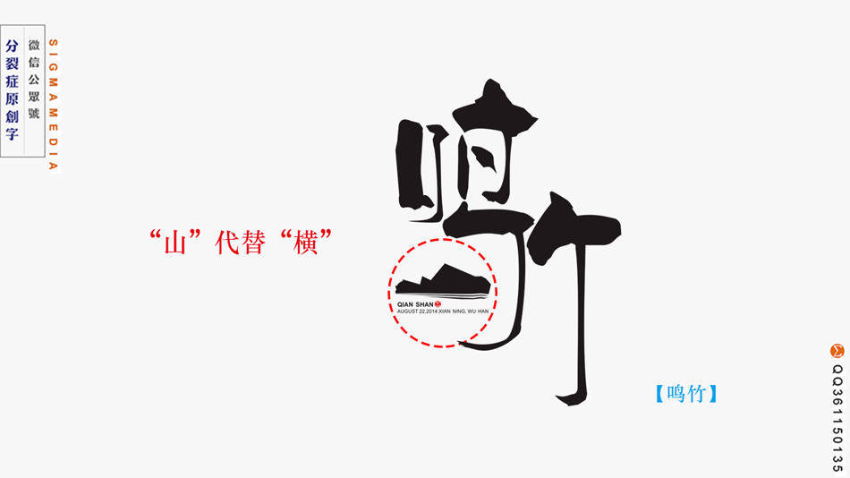 我們日常看到的字都是橫豎有別,撇捺清晰,如果故意將漢字的個別筆畫塊面處理,就有了突破以往認知的新奇感,增加趣味性。