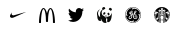 這些商標都是16×16的尺寸,耐克,麥當勞,twitter和世界野生動物基金在小尺寸下依然能辨別,但美國通用電氣公司和星巴克在小尺寸下就失去辨別性了。