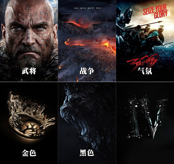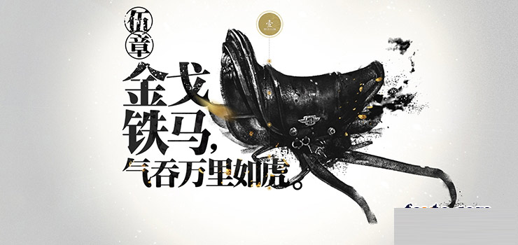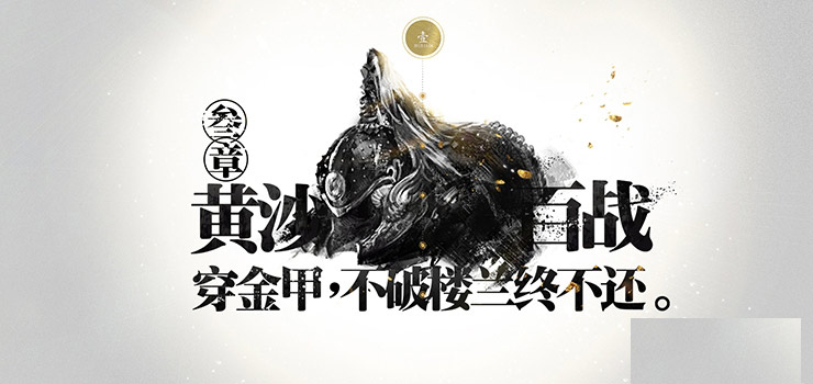 《刀鋒鐵騎》作為一款冷兵器戰爭網游,囊括了歷史上眾多的戰役戰爭,多少王侯將相置身其中。閉眼冥想那漫天飛沙走石,黑色狼煙滾滾中的金戈鐵馬是多么的豪美壯闊。聯想到的黑金兩色更能體現這視覺畫面。黑色的粉塵顆粒來自戰場,金色的文字碎片象征這將使,簡單兩色給《刀鋒鐵騎》帶來的最純粹的視覺。