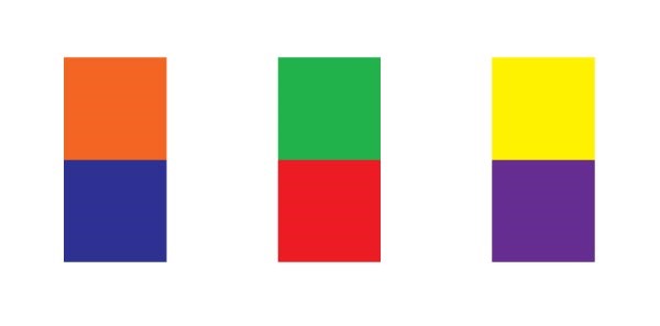 如果將紅色和黃色、黃色和藍色、藍色和紅色均勻混合,就會創建三種間色:綠色、橙色和紫色。將這些顏色應用進項目中,可以提供很強烈的對比。