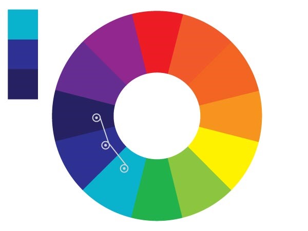 相似色是指在色輪上相鄰的三個顏色。相似色是選擇相近顏色時十分不錯的方法,可以在同一個色調中制造豐富的質感和層次。一些很好的色彩組合有:藍綠色、藍色和藍紫色;還有黃綠色、黃色和橘黃色。