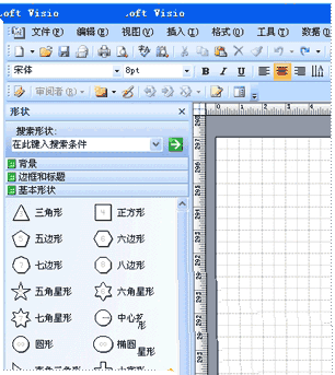 除繪圖頁外,還會顯示“形狀”窗口,該窗口具有三組形狀: