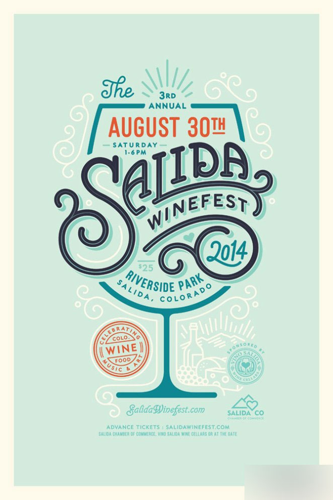 首先,你必須清楚地知道讀者應怎樣獲取信息,而后利用顏色、線條和文字的不同尺寸及粗細來配合做到這點,也就是為信息打造一條視覺線索。可參考下方的Salida品酒節,引領讀者視線的信息線索就好比紅酒在杯中輕輕搖曳。