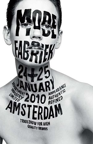 在下方的例子中可以看到,設計師在為一個時尚活動所作的海報中,將自己所設計的字體覆蓋在模特身上。