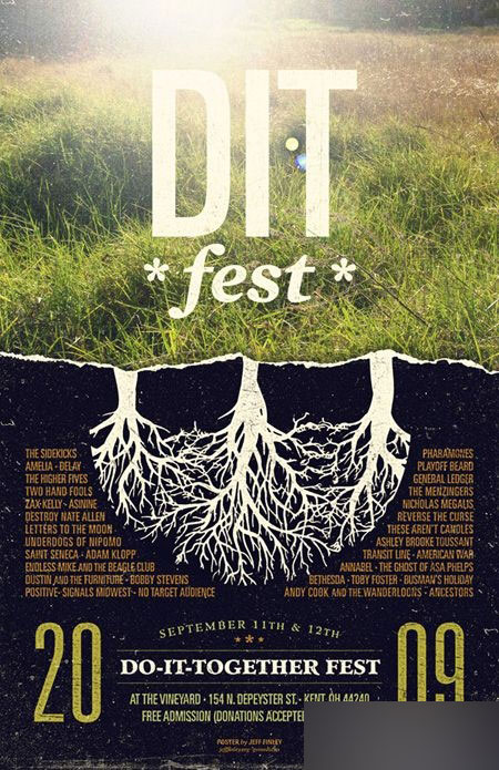 生活并不總是一條直線,不同的視角可以為海報設計增添新奇感。譬如改變圖片的視角,選擇俯視或仰視作為拍攝角度,也可以將文字呈斜線排放,而非常用的平直線。這些巧妙的海報可帶領受眾的目光在版面中上下穿行,避免枯燥呆板。
