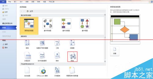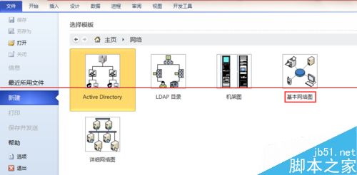 2、點擊模板類型里的【網(wǎng)絡】,在該模板下可以找到【基本網(wǎng)絡圖】和【詳細網(wǎng)絡圖】,如果我們僅僅畫一個簡單的網(wǎng)絡拓撲圖,可以選擇【基本網(wǎng)絡圖】,如下圖所示。