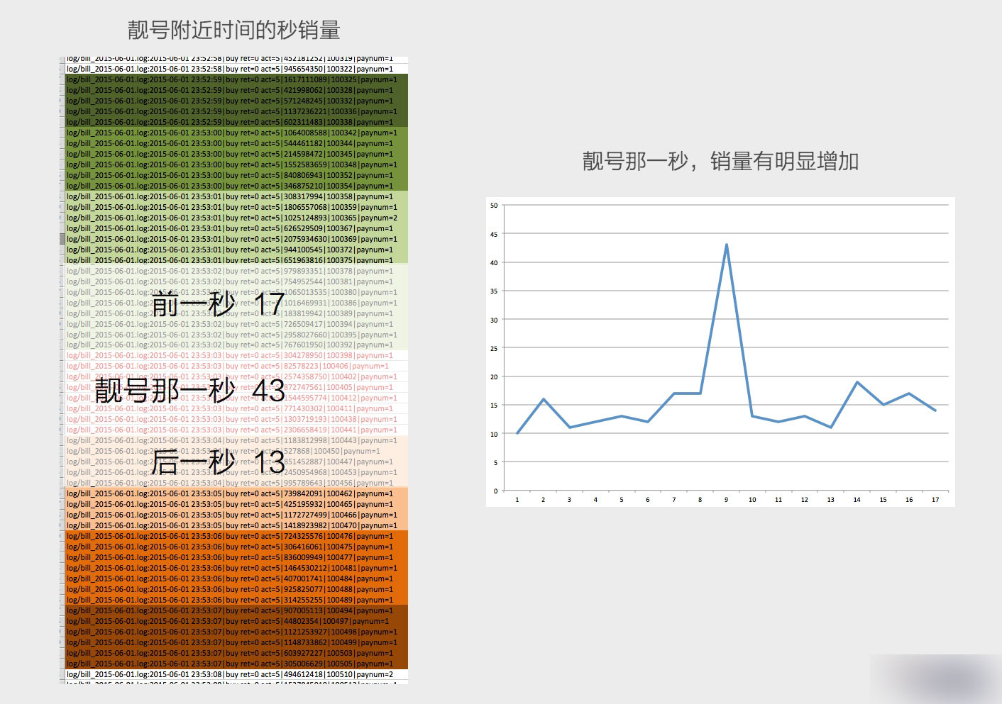 觀察BigBang二期的數據發現,以第一個靚號"No.100426"為例,在這個靚號購買的那一秒,銷量有非常明顯的增加。
