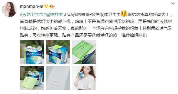 該波創(chuàng)意也引發(fā)眾多網(wǎng)紅段子手加入觀戰(zhàn),引發(fā)廣告學(xué)院派與在野派大PK。#液體衛(wèi)生巾#標(biāo)簽更被推上了微博的熱門(mén)話題榜,也被冠以"震驚廣告界的液體衛(wèi)生巾"稱(chēng)號(hào),共獲得超過(guò)3千萬(wàn)的關(guān)注量。
