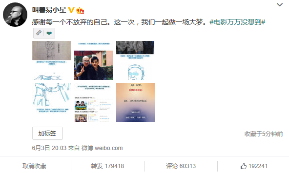 (叫獸易小星6月3日晚發(fā)布長(zhǎng)圖文"夢(mèng)想貼"為其《萬(wàn)萬(wàn)沒(méi)想到》電影版推廣)