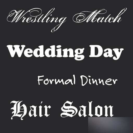 如果你是敏銳的,那么你會發現這些字體選集看上去是非常糟糕的。主要原因是,有視覺個性的字體選集和手寫單詞被分開了,脫節了。你也從不會在看到一個世界戰斗冠軍用一個一個漂亮的腳本字體來表達驚呼興奮感。同樣的道理,你可能永遠都不會在你的婚禮請柬上使用Cooper Black字體。我們已經習慣于看到不同類型的用于特定用途的字體。