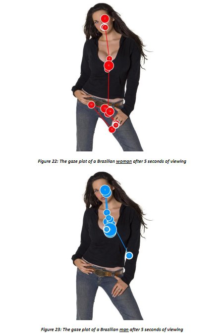 Miratech做了眼動跟蹤研究,測量男人和女人怎么看性感年輕女性的照片。
