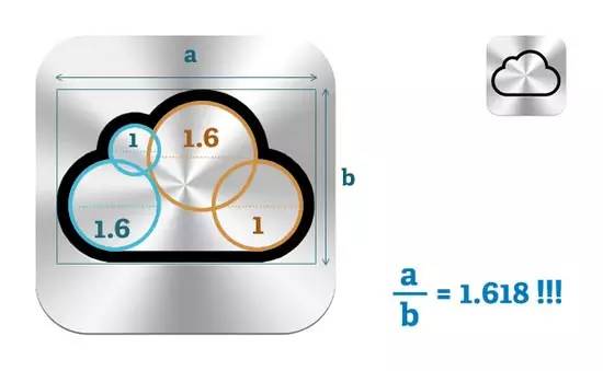 Apple的另一個產品iCloud也是由具有黃金比例的四個圓構建而成,而整體的logo也同樣符合黃金比例。