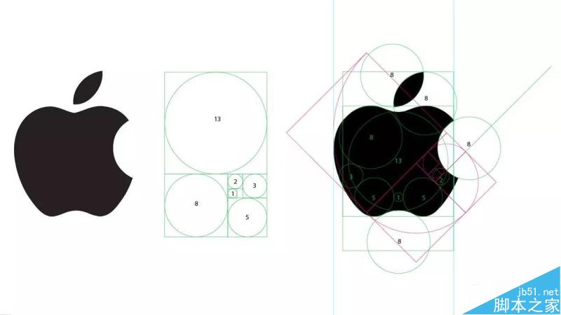 首先是Apple的logo,利用斐波那契數列1,1,2,3,5,8,13,21,……為比例的圓形切割而成,使得logo整體非常的平衡。