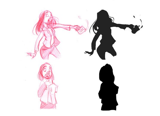來自于Leonardo Sala的小技巧:你有沒有注意過動畫電影中的每個重要角色都可以僅從他們的影子辨識出來?這個魔法就叫做剪影。找到一個強烈和有趣的剪影的目的就是去創造出一個讓人過目難忘的角色。