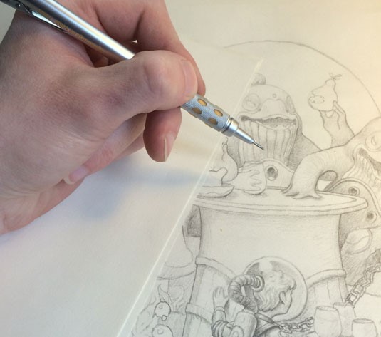 來自Sylwia Bomba的小技巧:你的手指越靠近鉛筆使用的部分,你就更容易控制畫的更精確,筆畫也會比較重,離得遠的話,會更難控制,更少精度,更細的筆畫。
