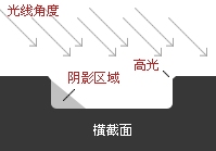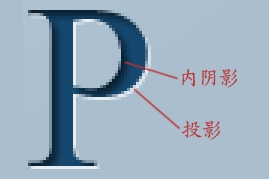 如果把文字凹刻的橫截面想象成如下圖所示,那么內(nèi)陰影樣式的運用已經(jīng)塑造出了橫截面左側(cè)的陰影區(qū)域。