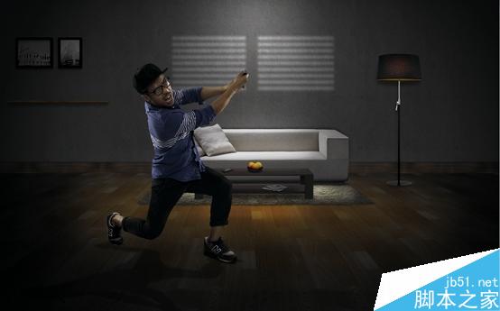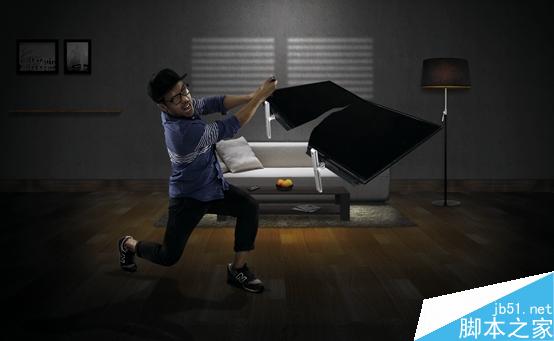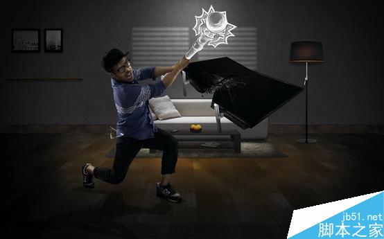 4:接下來就是結合模特的動作開始手繪元素(因為創意腳本有手繪的結合)先簡單的把武器和電視的構圖畫出來,位置透視都差不多了,就可以根據構圖來拍攝電視機素材。(電視機在模特動作確定后再拍攝。這樣的話,電視機的角度和透視與模特的動作不會有太大的透視不和諧的問題)