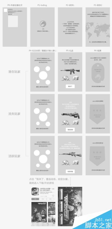 2.在整體上使用了序列幀動畫的形式來交代了P2的故事情節(jié)(想一開始給用戶映入眼簾的就是一個相對有代入感的故事,吸引住用戶繼續(xù)往下看);