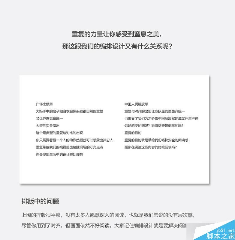 今天為大家分享重復設計在排版中的運用,教程很不錯,對于不了解排版的朋友間的快速的從文章中了解排版。推薦過來和武林網的朋友們一起分享,一起學習了,希望能對大家有所幫助!