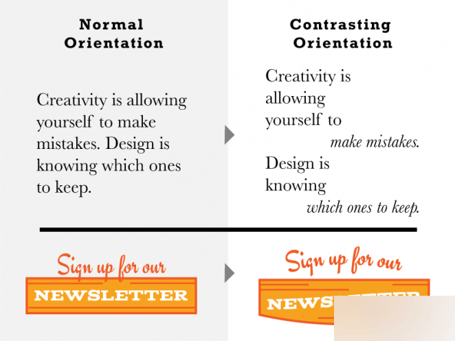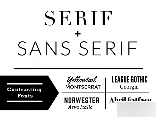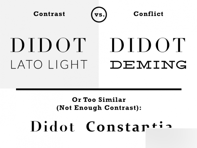 當(dāng)你尋求字體組合的時(shí)候,你需要的是沖擊力而非沖突,這兩者是有區(qū)別的。兩種字體有差異,有的時(shí)候是沖擊力,有的則是沖突。這種差異并沒有一種明確的規(guī)則,更多的時(shí)候是需要依靠設(shè)計(jì)者的直覺來判斷,多看多做你會(huì)逐漸明白的。