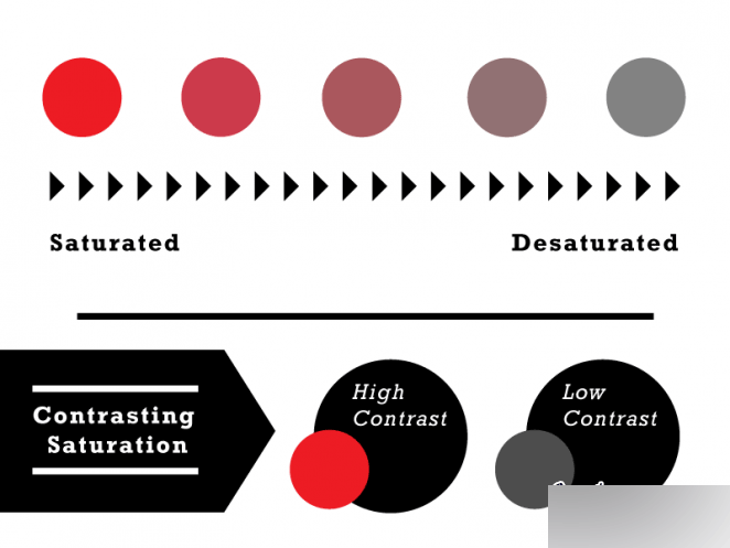 色彩的強(qiáng)度最強(qiáng)的時(shí)候,也就是飽和度最高的時(shí)候,是最純粹的色彩。飽和度越高色彩越鮮艷,飽和度越低越接近于灰色。同一色彩不同飽和度下的色彩能夠構(gòu)成沖擊力,不同色彩不同飽和度下也能構(gòu)成沖擊力。