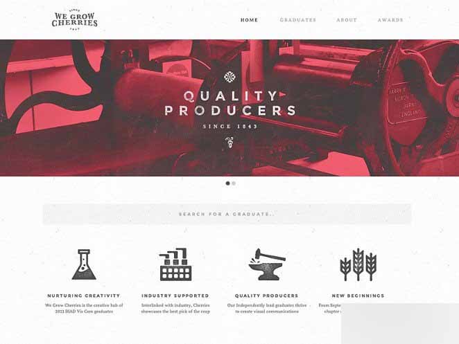 案例中的頁面,玫瑰和標(biāo)題都處于整個(gè)布局的兩個(gè)節(jié)點(diǎn)上,對(duì)稱而自然,不同屬性的元素也錯(cuò)落開構(gòu)成了沖擊力。