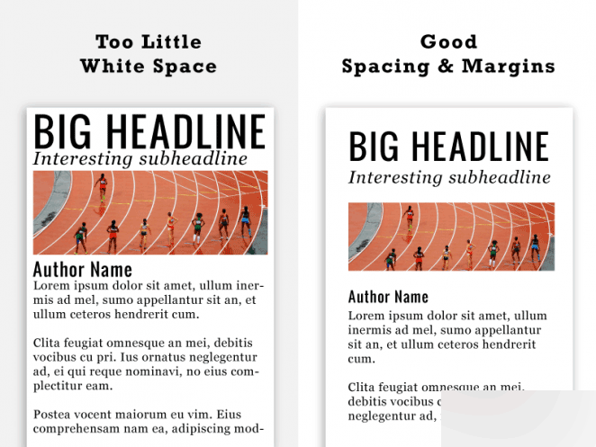雖然將頁面或者畫布填滿信息是非常誘人的事情,但是效果往往不好,留白同樣重要。留白可以期待分割內(nèi)容、組織設(shè)計(jì)元素、形成沖擊力的作用。越是復(fù)雜多變的布局,留白越是重要(值得注意的是,它并不一定非得是白色)。留白出現(xiàn)之后,可以讓設(shè)計(jì)不同的部分有明顯的沖擊力。