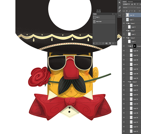 Simpson的作品集里有一系列插畫標簽,都是他為各種大大小小的品牌設計的,如El Mariachi, Chilly Moo, Mic's Chilli and Jameson等。"現在我認為客戶們都有這個意識了,客戶要求把我的名字添加到我設計的標簽上,這樣的事情已經變得越來越普遍了,真是太好了。"