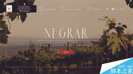 2.Cantina Valpolicella Negrar網站的文字主要采用了襯線字體,深色背景上的細長字體給人優雅精致的感覺,完美地詮釋了產品特色。