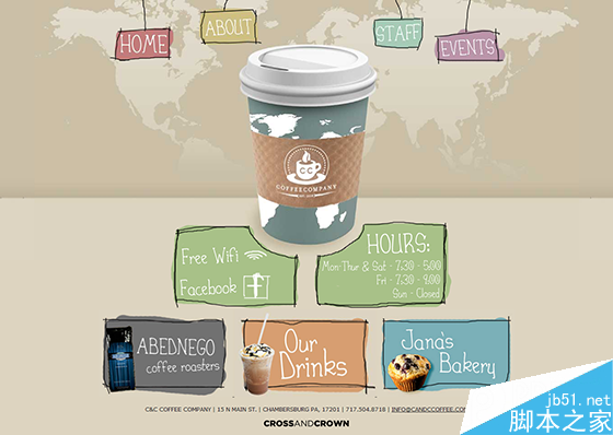 7.C&C Coffee Company網站的手寫風格字體與網頁里其他元素巧妙呼應,在色彩和布局上展現了高度的統一,網站整體在視覺上傳達著手工特色,與產品本身具備的特色保持著一致。