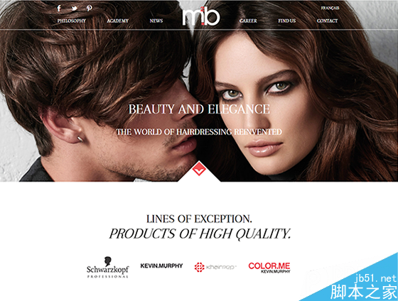 8.這個頁面給你什么感覺,美麗、迷人、時尚? M2B網站的圖片正是給用戶傳達這樣的感受。不管是導航還是banner圖里面的文字,都采用這種美麗的襯線字體,與圖片所表達內容相得益彰。而簡潔圓潤的logo圖在整個頁面中看起來既醒目,卻又不顯得突兀。
