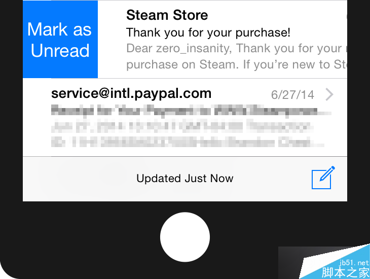 在Apple的Mail APP中,向右輕掃,顯示出了"標記為未讀"的選項