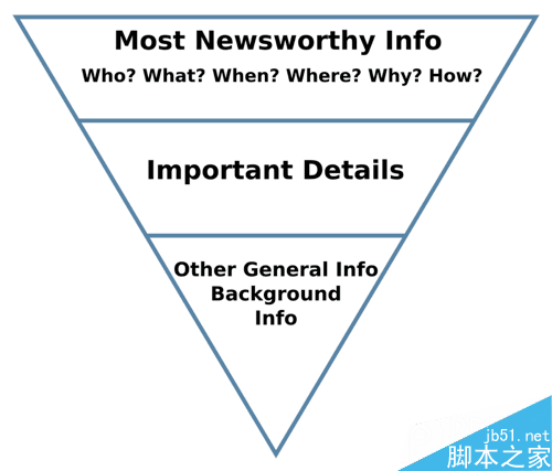 在設計中建立視覺層次結構的方式與新聞記者在寫作中的方式一樣——倒金字塔的創作方式。最重要的信息在第一段或者前兩段。主要包括誰,在那,什么時間,干什么,為什么,怎么做。它會告訴你你需要知道的一切。