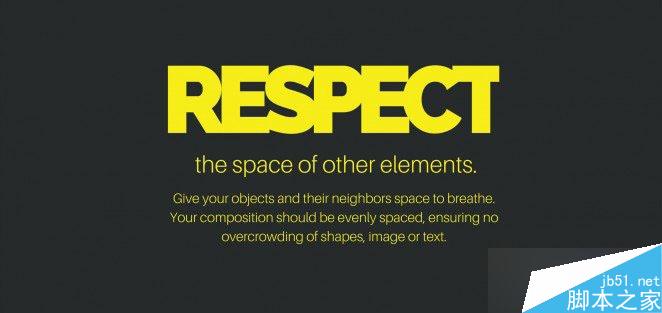 "Respect"這個(gè)詞的字間距被壓縮,從而讓整個(gè)單詞顯得更有凝聚力。排版中,各種元素間距需要根據(jù)實(shí)際情況來調(diào)整,內(nèi)容多的時(shí)候可以適當(dāng)收緊,少的時(shí)候可以適當(dāng)放松。間距大小都需要兼顧到基本的可讀性,分太開和離太近都很難讓人閱讀。