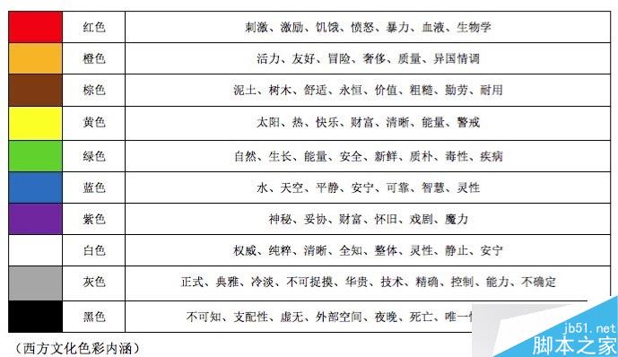 這個是我自己看了美國視覺設計教材后摘下的,也就是大家常說的色彩的內涵,色彩傳達的意義。