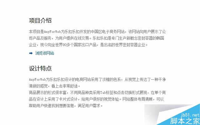 在AnyForWeb網站案例頁面中,標題使用18號的微軟雅黑,正文使用12號的宋體,兩種字體字號的對比讓文字內容富有層次,很容易吸引讀者眼球。