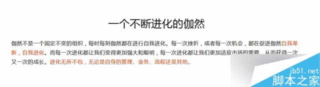 在伽然官網中,一部分文字采用了與主要文字不同的另一種顏色,這種對比是增加視覺效果的有效途徑之一,突出展示了段落的重點。