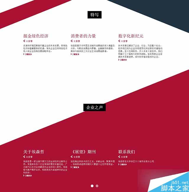 比如在埃森哲官網中,白色背景、紅色標題、黑色正文的對比,以及紅色背景與白色文字對比的應用,將文字內容清晰襯托出來,既有豐滿的層次感,同時有具有很強的視覺沖擊力。