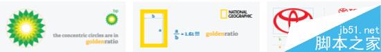 大家可以看一下這三個logo,英國石油,美國國家地理,豐田。都是嚴格的遵守了黃金比例。都是很規(guī)范,很嚴謹?shù)脑O(shè)計。BTW,說句題外話,大家千萬不要迷信所謂的參考線與黃金比例。好的黃金比例應(yīng)用,是為了在一定程度上規(guī)范畫面的效果,從而達到視覺上的舒適。它就是輔助你達到"好設(shè)計"的一個工具,但是不要以工具為源頭去設(shè)計。一開始就秉承"我要用黃金比例去設(shè)計"或是"好設(shè)計都是以黃金比例為基礎(chǔ)",那這樣就是本末倒置了。