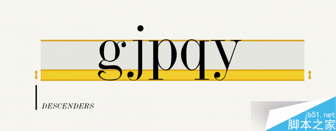 Descender 通常指的是小寫字母從x下方延伸出來的部分,諸如字母 g、j 和 p。