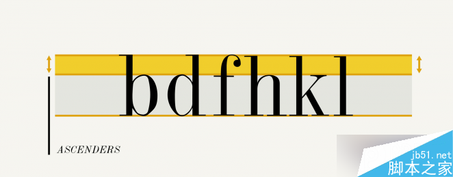 Ascender 指的是小寫字母中高于x高度的部分。諸如字母 b、d 和 f。
